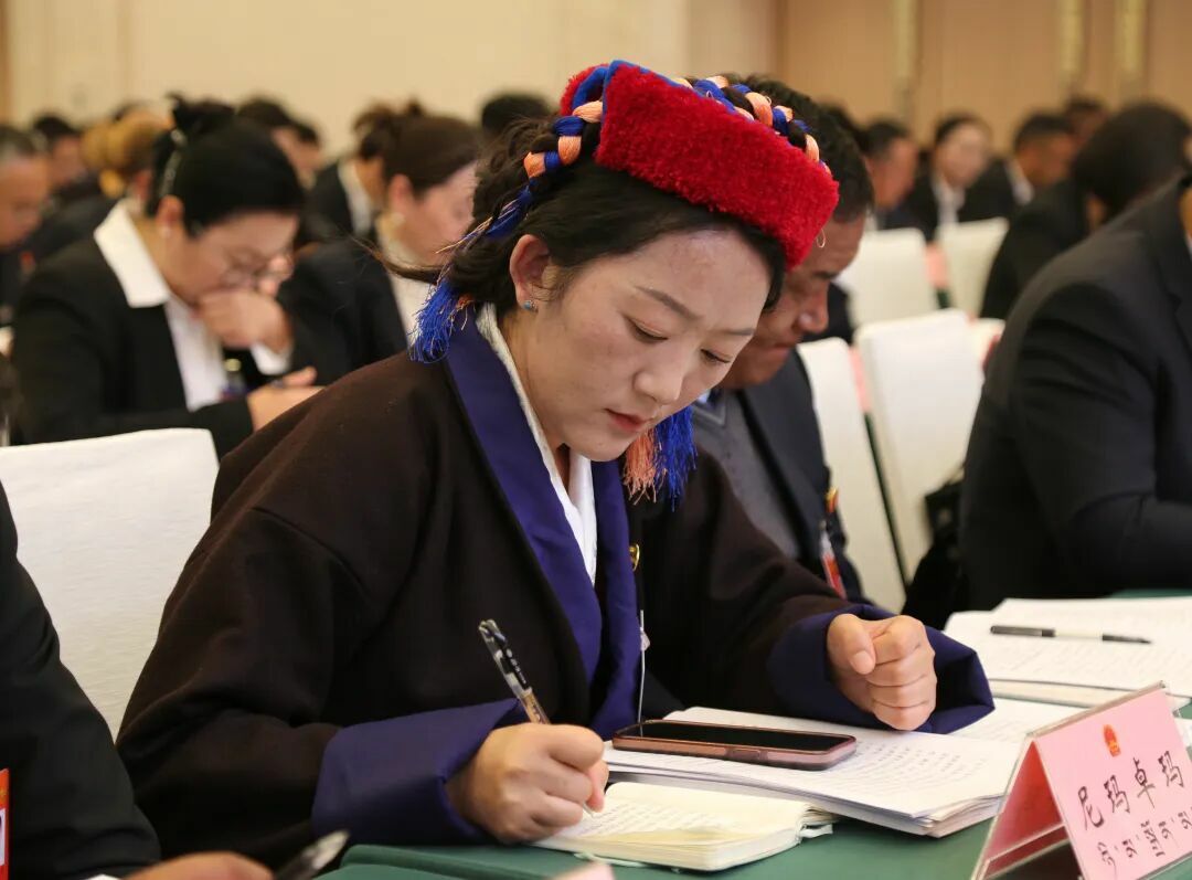 李富忠、李亚祥、沈百存、索朗多吉、赵天武、平措扎西、晋美、巴桑欧珠、翟坤、姜艳红在主席台前排就座。