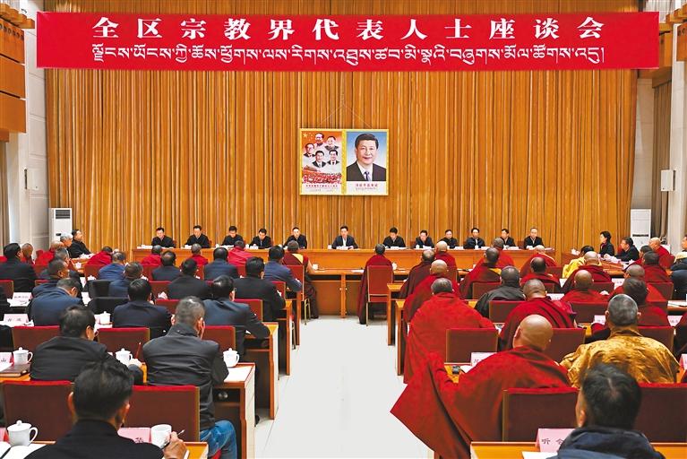 12月27日,全区宗教界代表人士座谈会在拉萨召开。自治区党委书记王君正出席并讲话。本报记者 李洲 摄